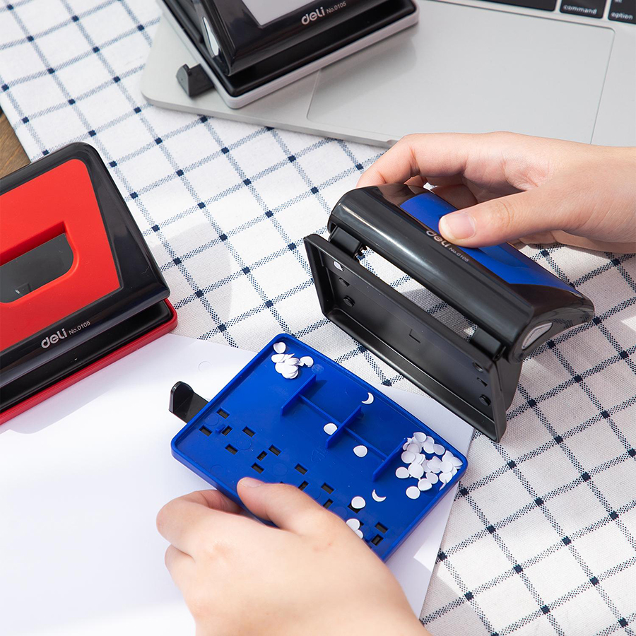 Đục lỗ Deli dùng trong văn phòng, trường học, gia đình, thuận tiện trong việc lưu trữ và hệ thống hồ sơ, tài liệu.