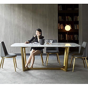 Chất liệu: mặt đá ceramic chống thấm ố, trầy xước với những đường vân tinh tế, đẹp mắt đi kèm với chân inox mạ vàng PVD cao cấp chống gỉ.