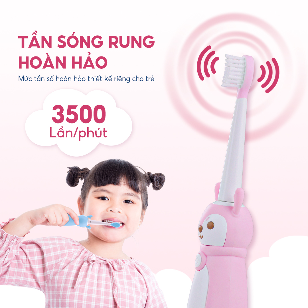 Tần sóng rung 3500 lần/ phút, hoạt động đủ mạnh giúp chải sạch mọi mảng bám trên răng của bé.