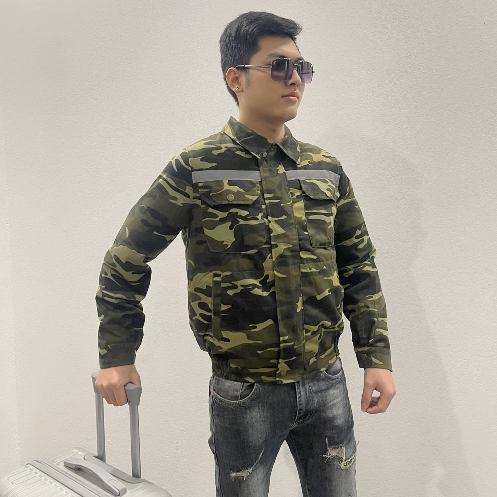 - Áo sử dụng 2 quạt thổi không khí từ ngoài làm mát, giảm nhiệt độ, điều hoà toàn bộ cơ thể.
