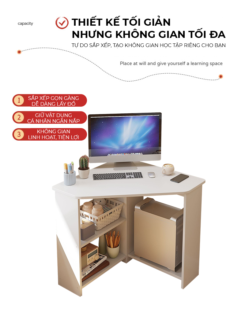 ✨Bàn làm việc góc tường có chỗ để cây máy tính, bàn học sinh, bàn sinh viên, bàn văn phòng tiết kiệm diện tích - GP386
