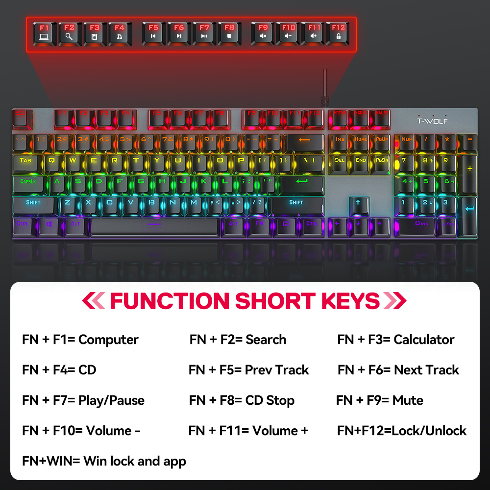 ✨Bàn Phím Cơ T-WOLF T17 USB- Hàng Chính Hãng