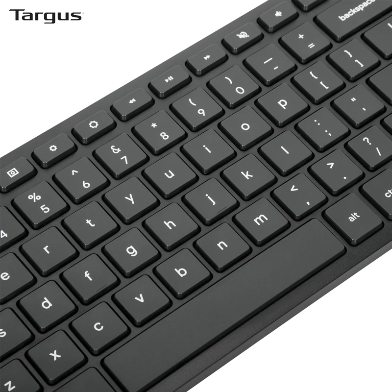 Bàn phím không dây Targus AKB869 Thiết kế mỏng với bàn phím midsize DefenseGuard Kháng khuẩn bảo vệ* tạo ra bề mặt sạch hơn và hoạt động liên tục để bảo vệ bàn phím bằng