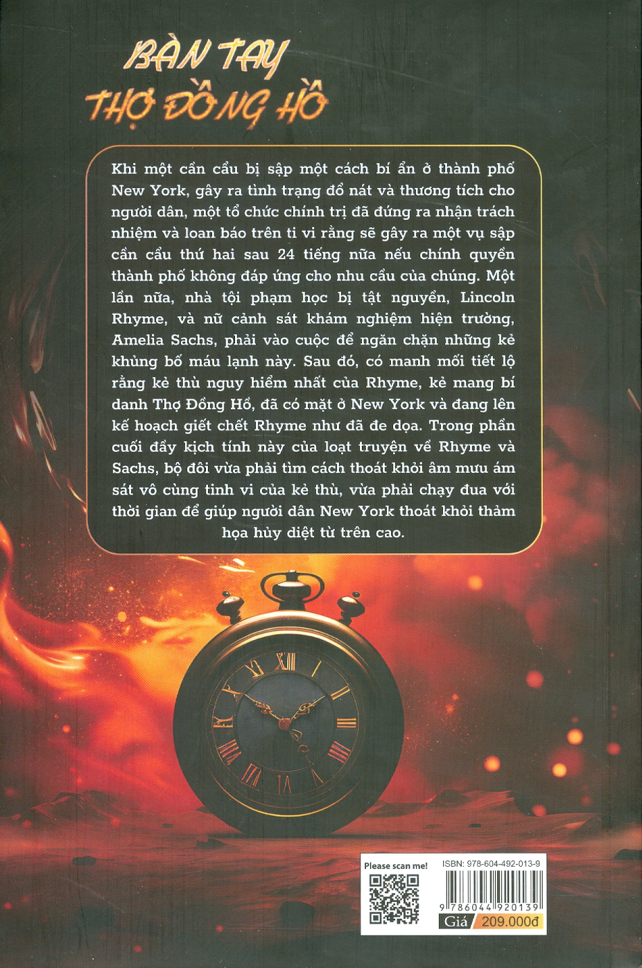 Một lần nữa, nhà tội phạm học bị tật nguyền, Lincoln Rhyme, và nữ cảnh sát khám nghiệm hiện trường, người cộng sự Amelia Sachs, phải vào cuộc để ngăn chặn những kẻ khủng bố máu lạnh này. Sau đó, có manh mối tiết lộ rằng kẻ thù nguy hiểm nhất của Rhyme, kẻ mang bí danh Thợ Đồng Hồ, đã có mặt ở New York và đang lên kế hoạch giết chết Rhyme như đã đe dọa.