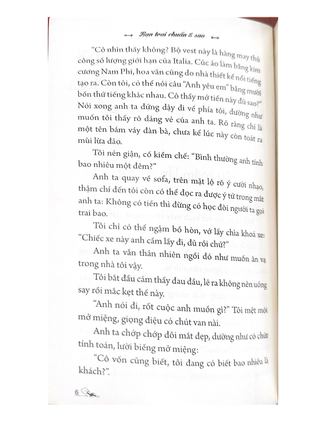 Cuốn sách Bạn Trai Chuẩn 5 Sao của tác giả Hồng Táo là một cuốn tiểu thuyết viết về câu chuyện tình yêu của một đôi trai gái yêu nhau, câu chuyện kể về sự bất chấp cả việc đánh mất bản thân mình, cô tìm mọi cách rũ bỏ quá khứ bất hạnh để theo đuổi lối sống thượng lưu hằng mong ước. Mọi thứ giờ đây với cô đều phải có chuẩn nhất định, tất nhiên, bao gồm cả tình yêu.
