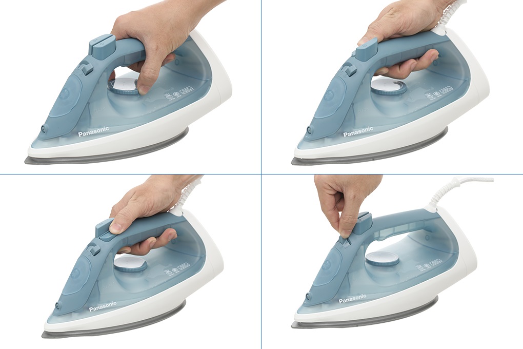- Bàn ủi Panasonic thiết kế tối giản, tông màu trẻ trung, chỉ nặng 1.1 kg kết hợp với tay cầm vừa vặn cho bạn cầm nắm và di chuyển bàn ủi linh hoạt.