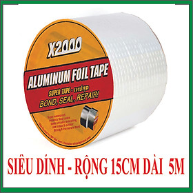 BĂNG KEO CHỐNG THẤM X2000 SIÊU DÍNH ĐA NĂNG DÁN MỌI CHẤT LIỆU Siêu Dính Siêu Bền Siêu Chống Thấm Nước - Độ dài: 5m - Độ rộng: 15cm - Tác dụng: Vá những nơi