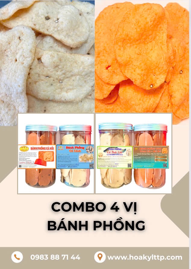 Món ăn mọi người đều rất thích và an toàn. Có nhiều loại bánh Phồng : BÁNH PHỒNG CÁ THÁC LÁC BÁNH PHỒNG CÁ LINH BÁNH PHỒNG CÁ HỒI BÁNH PHỒNG TÔM TÍT BỀ BỀ