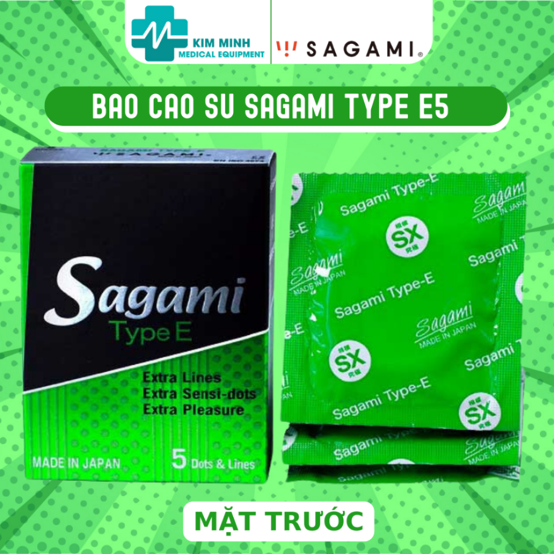 - Bao cao su Sagami Type E là dòng sản phẩm có gân gai, một lần thắt của Sagami – Nhà sản xuất bao cao su đầu tiên tại Nhật Bản. TÍNH NĂNG SẢN PHẨM