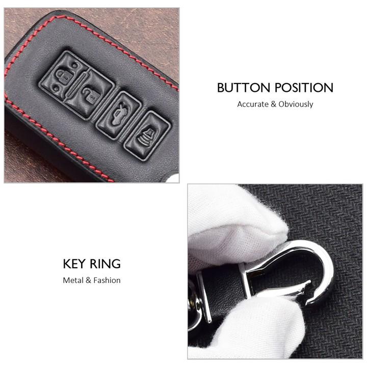 - Chất liệu: Da nappa - Dòng xe sử dụng: TOYOTA - Trọn bộ sản phẩm : bao da chìa khóa và móc khóa - NSX : Việt Nam Chi tiết sản phẩm: + Chất
