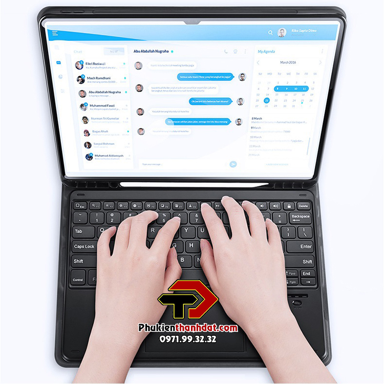 Bao da kèm bàn phím chính hãng Dux Ducis có bàn di chuột TrackPad với chân đế có thể điều chỉnh, bàn phím có thể tháo rời và bàn di chuột thông minh để đánh máy,