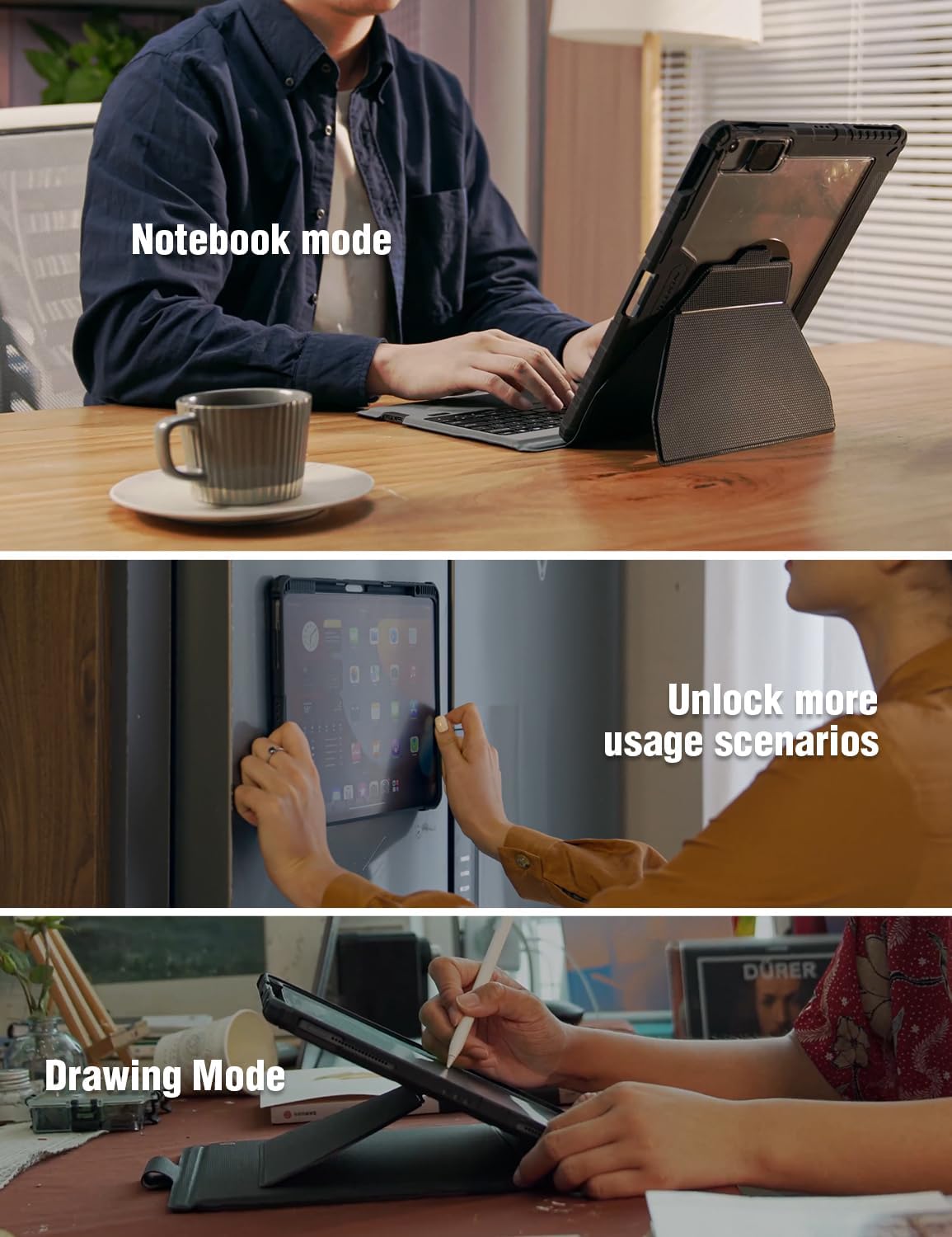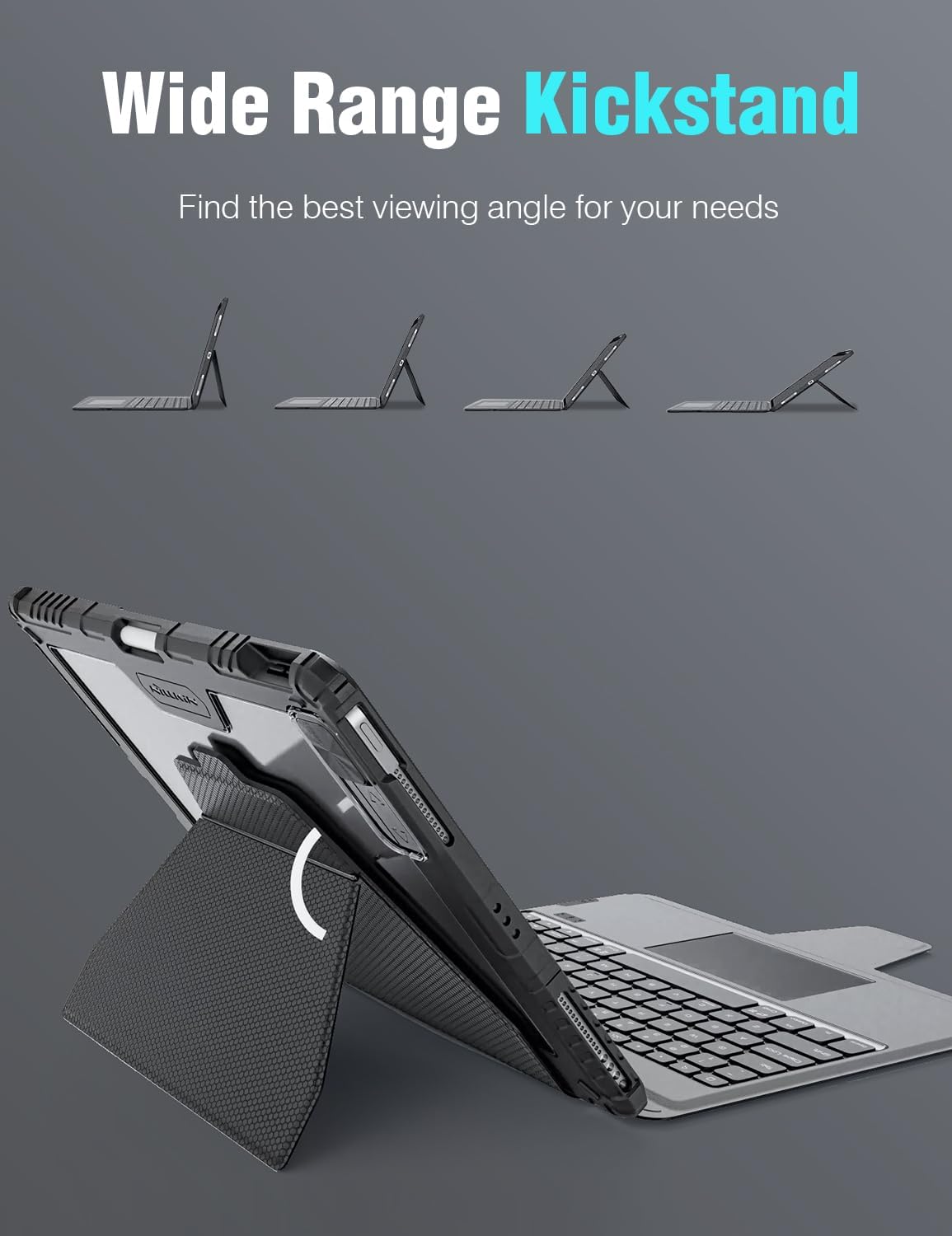 【ĐƯỢC THIẾT KẾ ĐỂ THOẢI MÁI】 — Vỏ bàn phím Link cho iPad này có thiết kế gắn vòng từ tính để có góc nhìn mượt mà, có thể điều chỉnh. Cũng có thể biến thành vỏ từ tính riêng biệt khi tháo khỏi bàn phím, để linh hoạt hơn và chỉ sử dụng vỏ từ tính cho tất cả những nơi bạn có thể từ hóa.