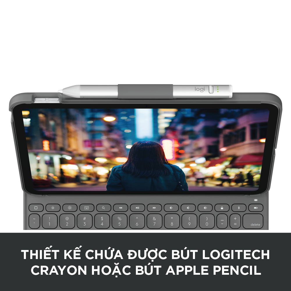 Bao da kèm phím Logitech Slim Folio dành cho iPad 10.9 inch Gen 10 - Bluetooth, Pin 3 năm, chống thấm nước