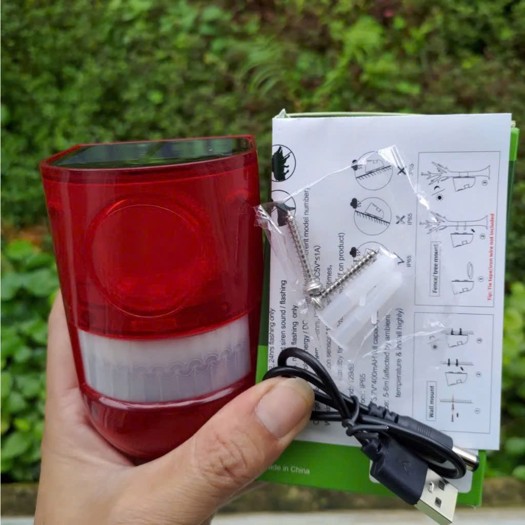 Cảm biến hồng ngoại chống trộm siêu nhạy: Phát hiện chuyển động trong phạm vi 12–15 mét, kích hoạt còi hú cảnh báo tức thì.