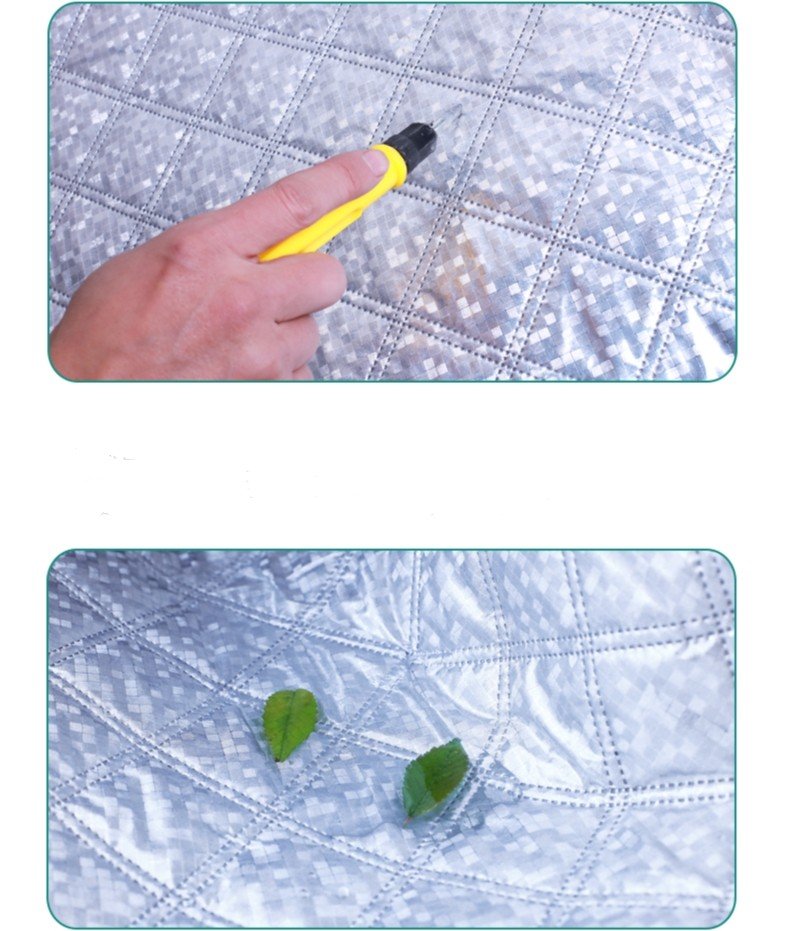 – Bạt chống nóng ô tô là sản phẩm được sản xuất bằng vật liệu vải dù Polyester Oxford Fabric được bọc tráng nhôm nên rất bền với thời gian, độ bền gấp 3 chất