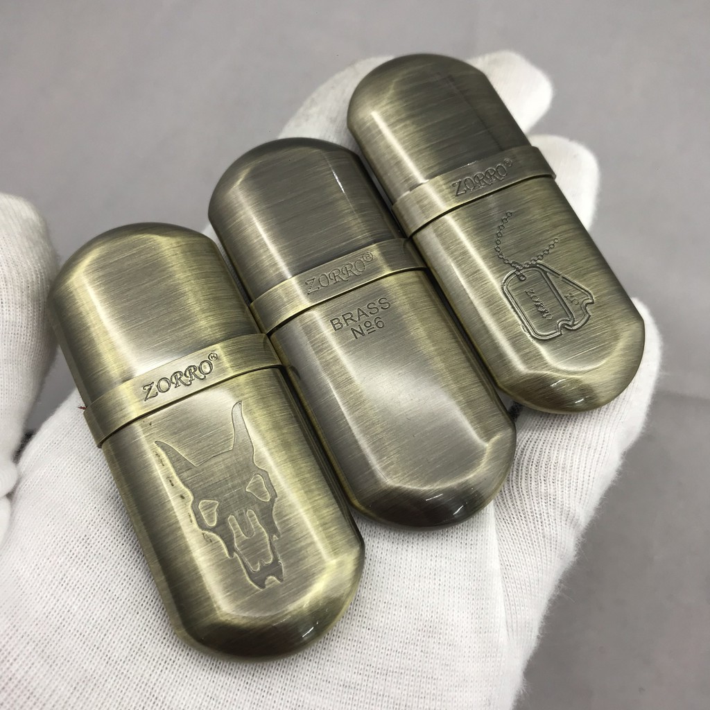 Bật lửa xăng đá gió thổi không tắt bằng đồng Zorro Z506