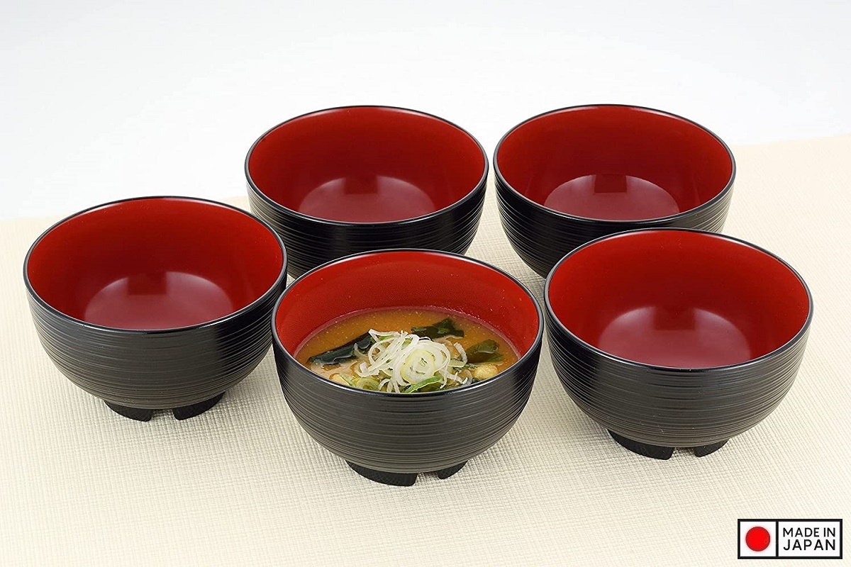 Bát tròn miệng rộng 500ml (Ø14.5×5.5cm) ■ Xuất xứ: Nhật Bản | MADE IN JAPAN ■ Kích thước:Ø145 x 55 Hmm ■ Màu sắc: Đen ~ lòng đỏ ■ Chất liệu: - Nhựa Polyester (PET) bề mặt phủ