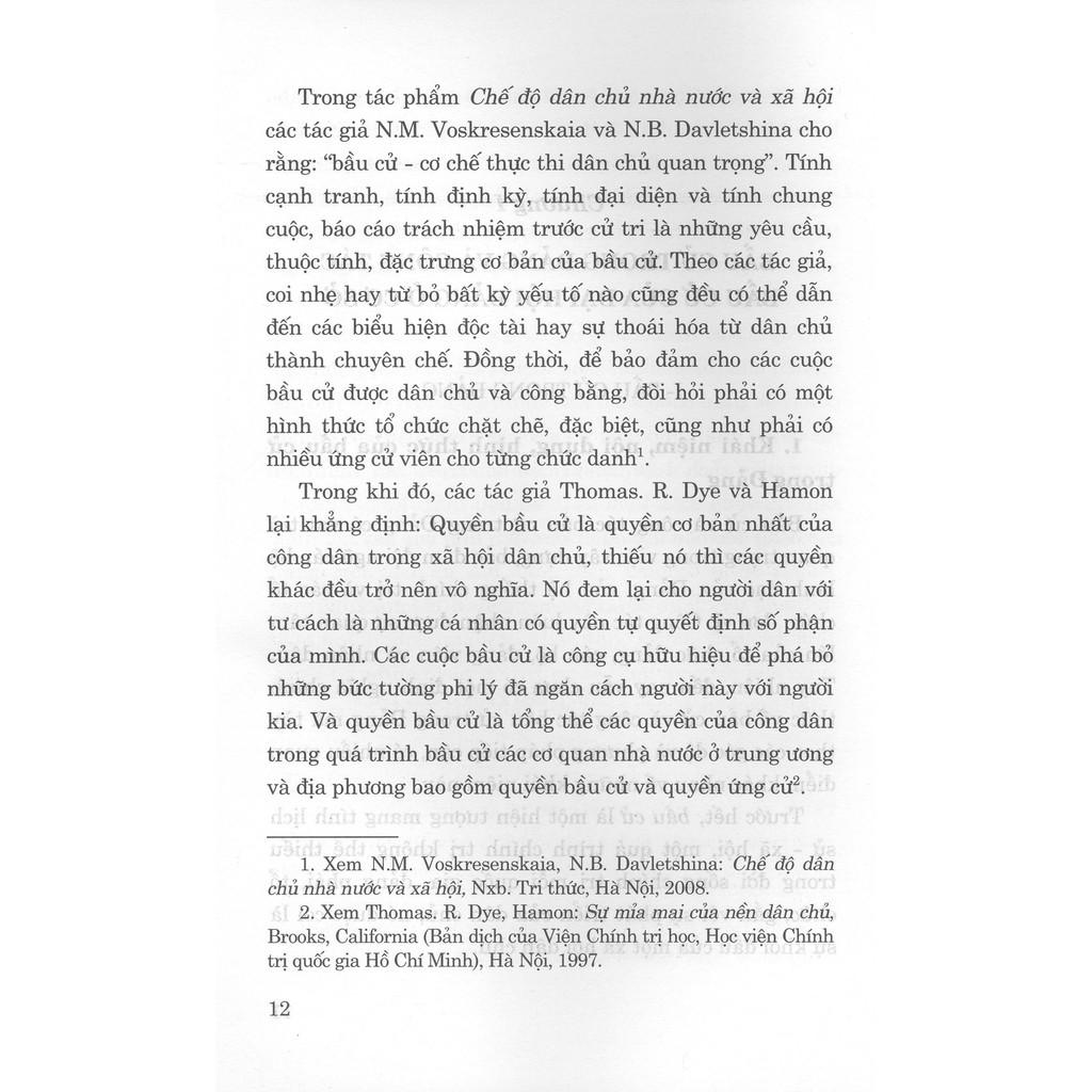 Cuốn sách khái quát một số vấn đề lý luận về bầu cử nói chung; khảo sát, phân tích, đánh giá những kết quả đạt được, những vấn đề còn tồn tại trong công tác bầu cử ở đại hội cơ sở của một số địa phương vùng đồng bằng sông Hồng; trên cơ sở những hướng dẫn, chỉ đạo của Trung ương Đảng, tác giả đề xuất một số giải pháp mà các cơ sở đảng cần thực hiện tốt để công tác bầu cử thực sự mang lại hiệu quả thiết thực nhất, góp phần vào thành công của đại hội đảng bộ các cấp, tiến tới Đại hội đại biểu toàn quốc lần thứ XIII của Đảng. Qua đó, cung cấp cho bạn đọc, nhất là đội ngũ cán bộ lãnh đạo ở cơ sở những luận cứ mang tính lý luận và thực tiễn về hoạt động bầu cử trong Đảng.