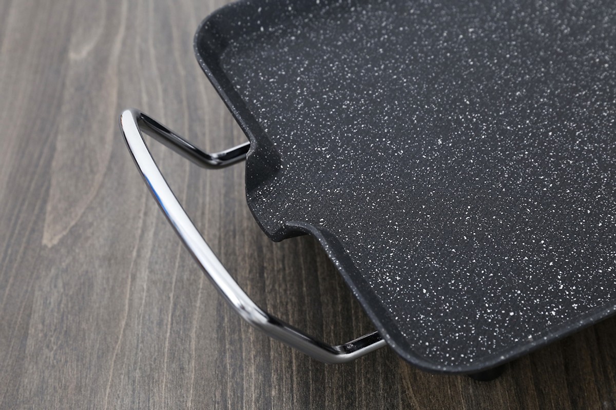 Chất liệu nhôm phủ lớp chống dính Mặt nướng làm bằng chất liệu hợp kim nhôm đảm bảo độ bền của sản phẩm, giữ chảo không bị biến đổi khi tiếp xúc nhiệt độ cao