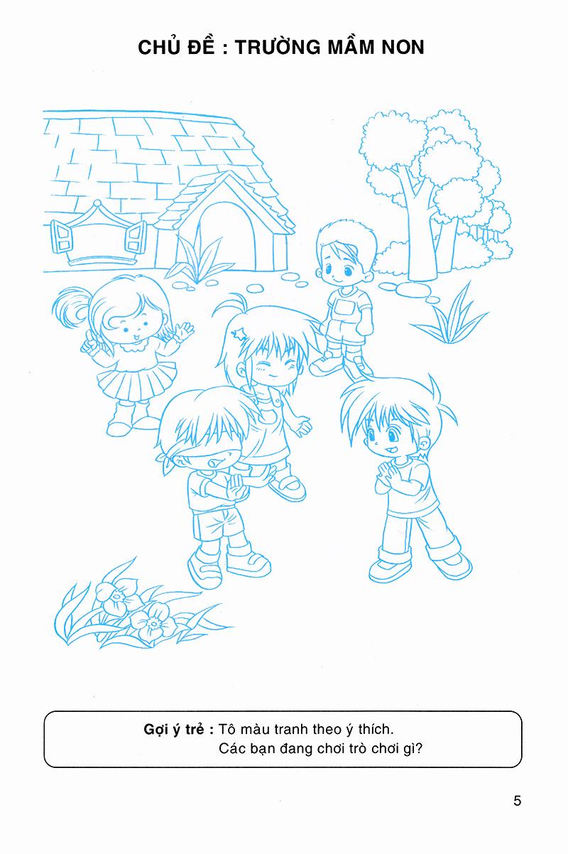 Cuốn sách này được thiết kế theo từng chủ đề như , trường mầm non, cơ thể người, nghề nghiệp, thế giới động vật, thế giới thực vật, phong cảnh... và gợi ý thực hiện một cách rõ ràng, giúp trẻ hoạt động theo hướng tích cực, thể hiện tinh thần sáng tạo trong nét vẽ, tô màu, hoàn thiện hình, vẽ thêm hình...