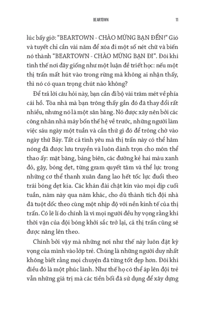 Ai cũng nói Beartown vậy là xong rồi. Một cộng đồng nhỏ nép mình sâu trong rừng, và ngày càng nhỏ lại khi cây cối xâm lấn. Nhưng ở đây có một sân băng cũ, và đây là lí do người dân Beartown tin rằng ngày mai sẽ tốt hơn hôm nay. Đội k.húc c.ôn cầu trên băng của họ sắp thi đấu ở vòng bán kết quốc gia, và họ hoàn toàn có cơ hội chiến thắng. Tất cả hi vọng và ước mơ của nơi này được đặt lên vai những cậu trai tuổi teen.