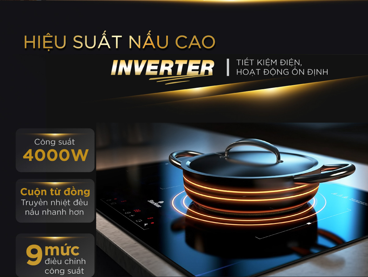 Công suất tối đa 4000W với 9 mức điều chỉnh công suất nấu tiện lợi.