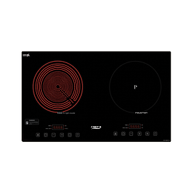 TÍNH NĂNG SẢN PHẨM: Mặt kính Keramik bo viền Aluminum Linh kiện Trino - Korea Điều khiển 2 phím Slider với 9 mức công suất Hẹn giờ độc lập cho từng vùng nấu, thời gian
