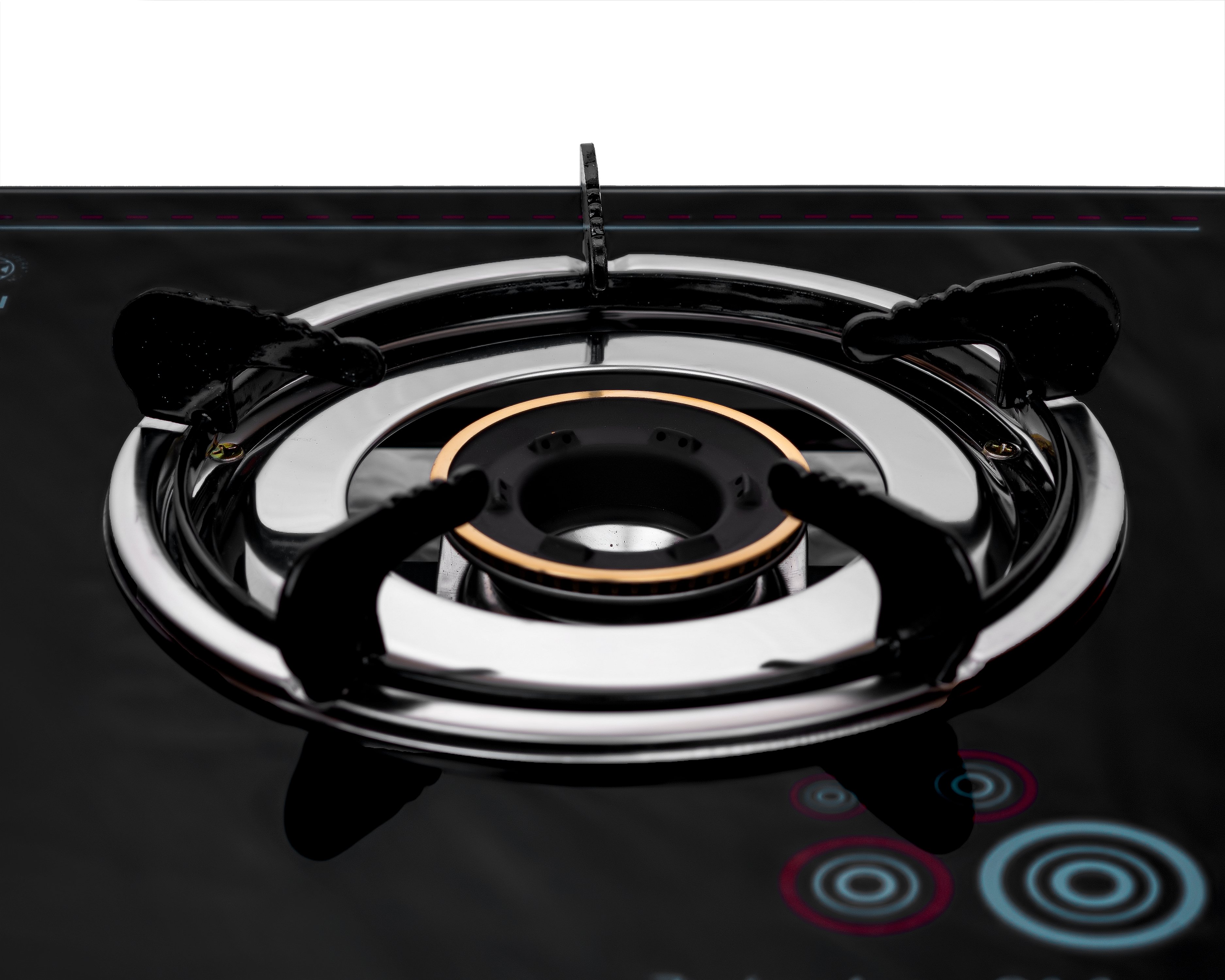 * Mặt kiếng cao cấp chịu lực, chịu nhiệt, thiết kế hoa văn sang trọng; - Thân bếp làm bằng inox chống rỉ sét, cao 60mm; - Núm vặn kiểu Rinnai; - Kiềng thép sơn