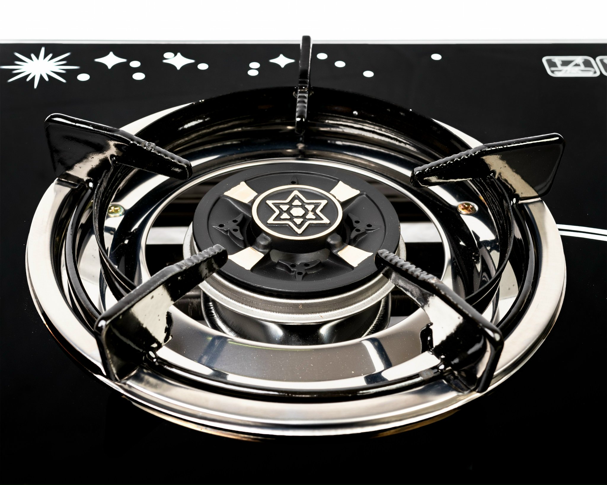 * Mặt kiếng cao cấp chịu lực, chịu nhiệt, thiết kế hoa văn sang trọng; - Thân bếp bằng inox, cao 100 mm; - Kiềng thép sơn tĩnh điện, có chắn gió; - Điếu loe