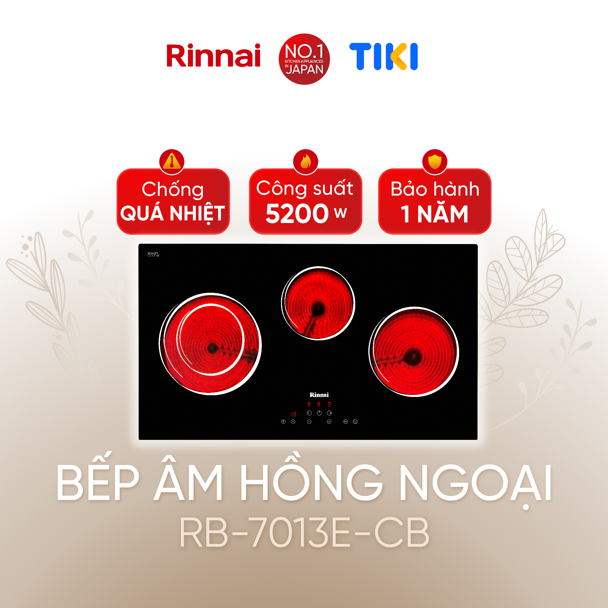 RINNAI chân thành cảm ơn bạn đã quan tâm đến sản phẩm: Bếp hồng ngoại Rinnai RB-7013E-CB mặt kính Schott 5200W - Hàng chính hãng.