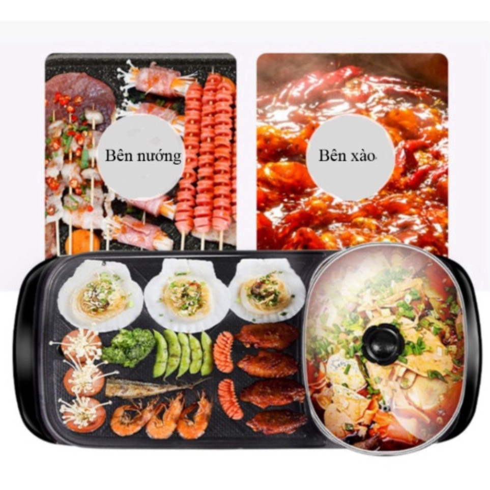 ✨Bếp lẩu nướng 2in1 đa năng cao cấp dài, nồi lẩu kiêm nướng công suất 1300w, bề mặt tráng men chống dính - Hàng chính hãng
