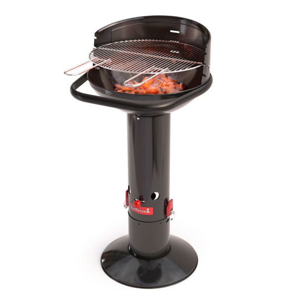 Bề mặt bếp nướng phủ men chịu nhiệt và chống trầy xước. Lưới nướng mạ crôm Ø 43 cm, có thể điều chỉnh ở 3 vị trí.