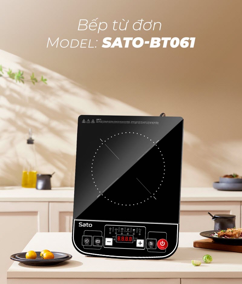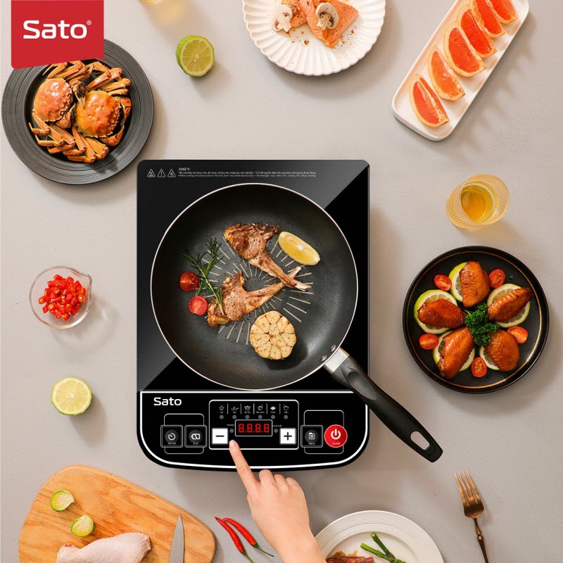Thiết kế nhỏ gọn, công suất lớn Bếp Từ Đơn Sato STB - 201 có thiết kế nhỏ gọn, linh hoạt với màu đen hoa văn bắt mắt, thích hợp cho những bữa liên hoan