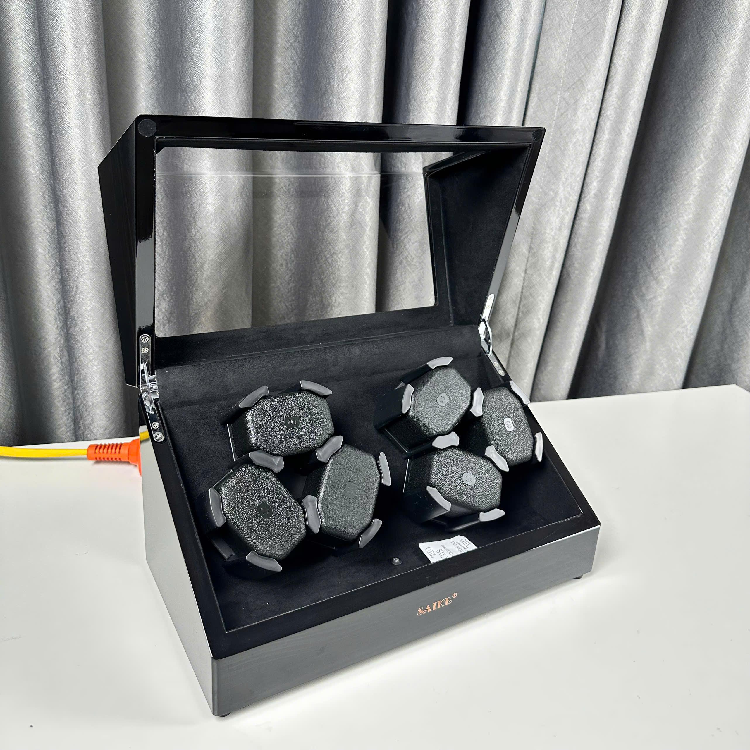 ✨[BH 2 năm động cơ] Hộp Xoay 6 đồng hồ gỗ Saike nền nỉ