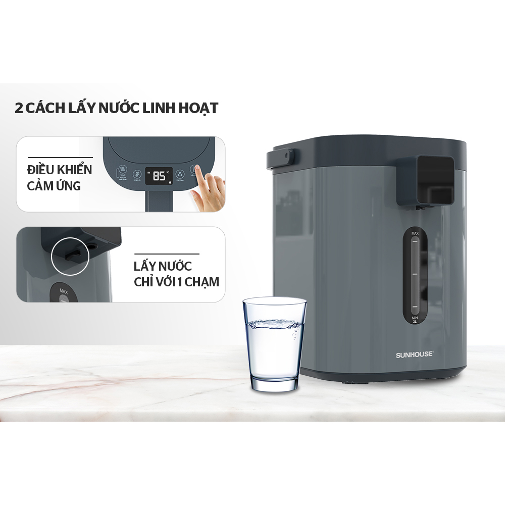 Bình thủy điện Sunhouse SHD1440 (3.2 Lít) có thiết kế hiện đại, kiểu dáng nhỏ gọn, màu sắc trang nhã, phù hợp với mọi không gian. Thân bình làm từ thép sơn bền bỉ, cách nhiệt tối ưu, có quai xách tiện dụng, dễ dàng di chuyển.