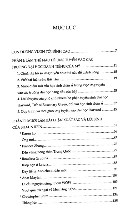 Với kinh nghiệm nhiều năm làm công việc tư vấn cho các học sinh châu Á và học sinh khu vực Bắc Mỹ ứng tuyển vào các trường đại học của Mỹ, Shaun Rein sẽ cũng cấp cho độc giả những chỉ dẫn thiết thực về chủ đề này: việc chọn trường, chuẩn bị hồ sơ, trình tự các bước và thời gian biểu trong thủ tục ứng tuyển, cùng với những phân tích và đánh giá thứ hạng 25 trường đại học hàng đầu nước Mỹ.