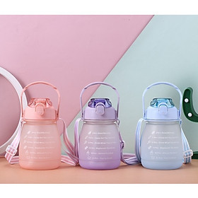 Bình nước 2 lít tặng Sticker dành cho người lười uống nước Fan House bình nước cute 2L có ống hút, v