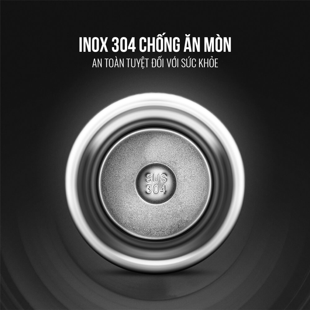 Sử dụng inox 304 tuyệt đối an toàn cho sức khỏe Dung tích 500ml Công nghệ hút chân không tối ưu, giữ nóng 8h và giữ lạnh lên đến 12h Thiết kế mạnh mẽ, có