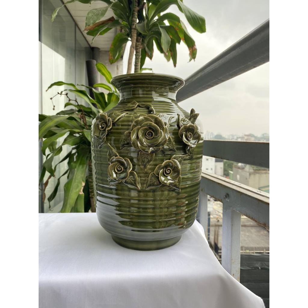 Bình hoa cao cấp Bát Tràng, hàng chuẩn loại 1, dáng chum họa tiết đắp nổi được thực hiện thủ công 100% bởi bàn tay lành nghề của các nghệ nhân làng nghề. Sản phẩm