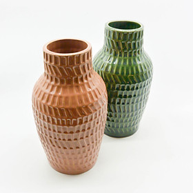 Sản phẩm gồm 2 lọ hoa miệng lượn. Chi tiết sản phẩm: Sản phẩm được phủ bởi lớp men rạng vừa cổ điển vừa sang trọng. Kết hợp với các họa tiết đắp nổi hình