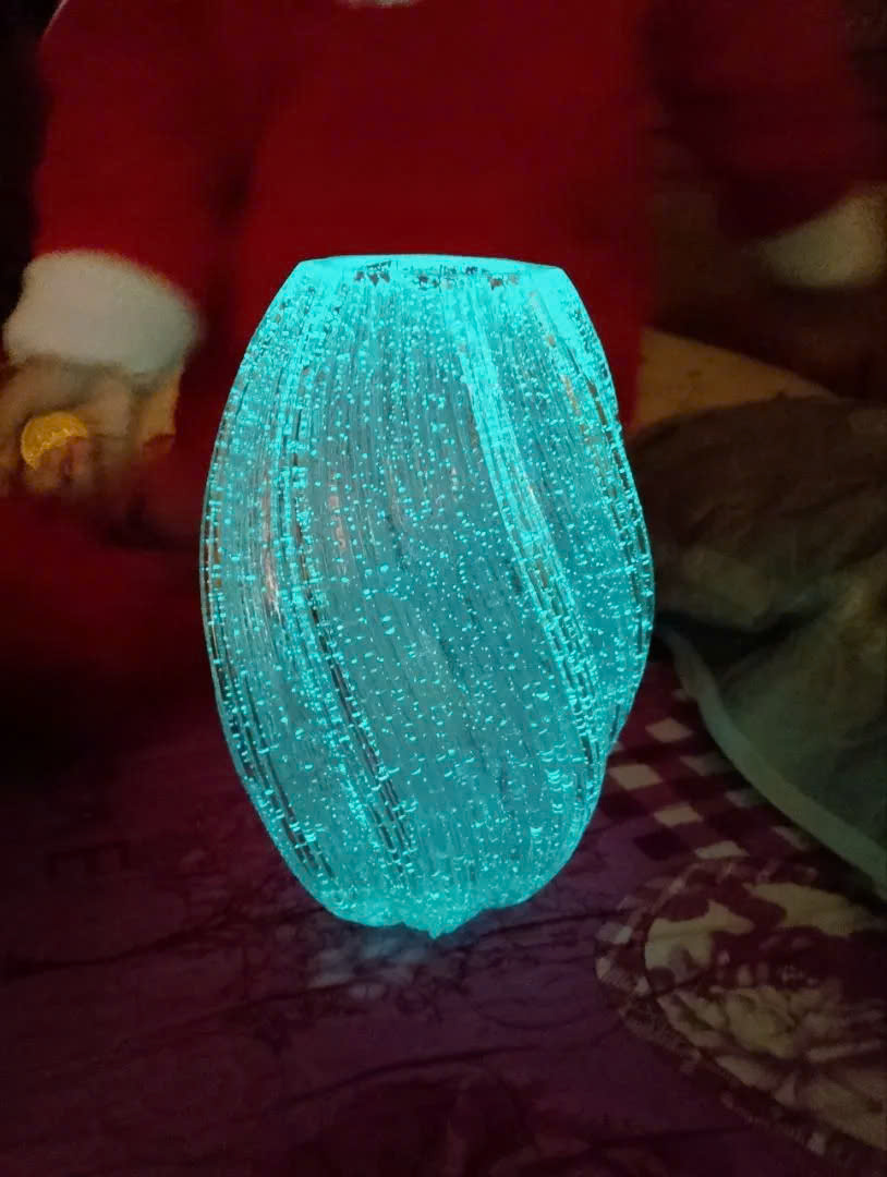 Bình Hoa Xoắn Thủy Tinh Phát Sáng – Decor Trong Suốt Lấp Lánh, Tỏa Sáng Trong Bóng Tối – Trang Trí Nhà Cửa Phong Cách Hiện Đại (16x27cm)