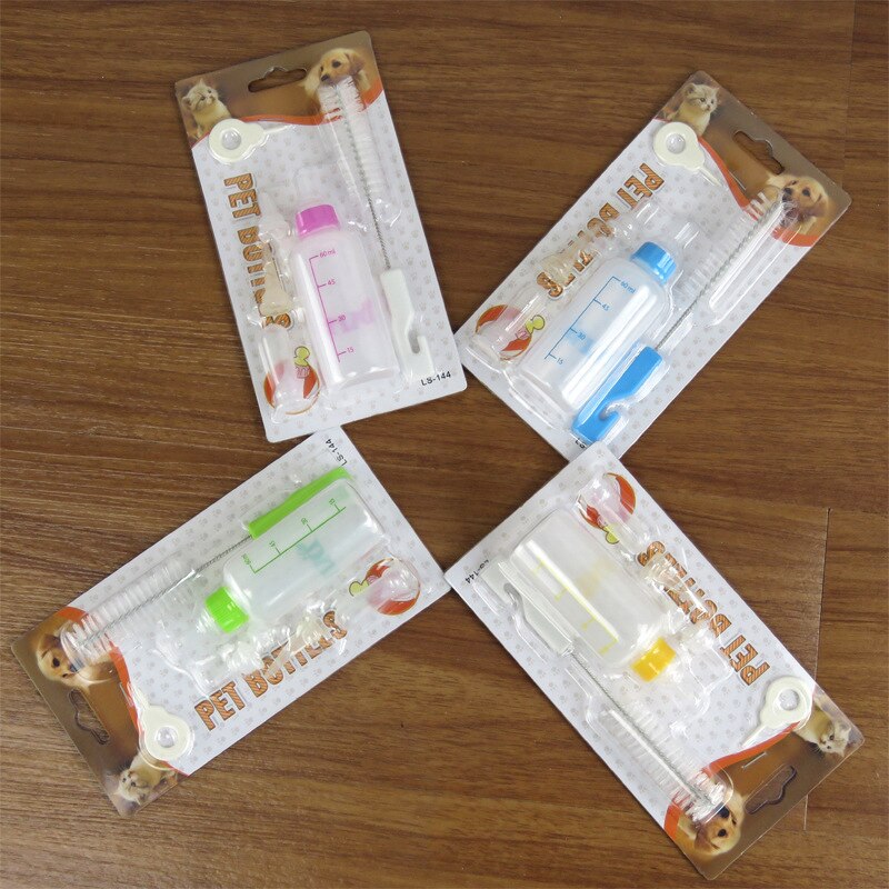 - Soft, environmentally friendly, non-toxic nipples, safe for pets. Specification: Material: Silicone Capacity: 60ml and 150ml Color: Random Package List: 1 x Bottle, 1 x Brush, 1 x Punching Needle, 4 x Nipple