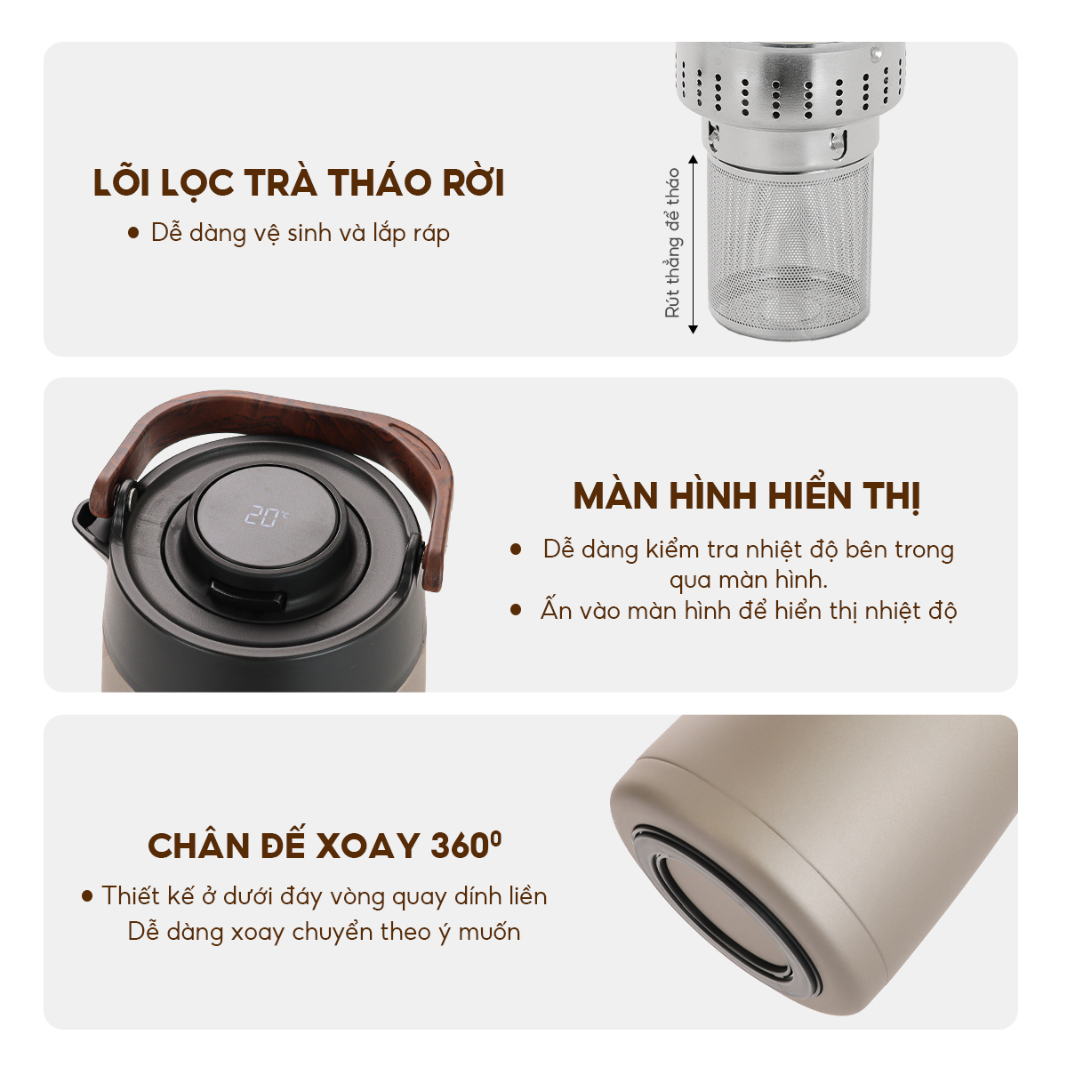 Chân đế xoay 360 độ – tiện lợi trong mọi thao tác rót nước