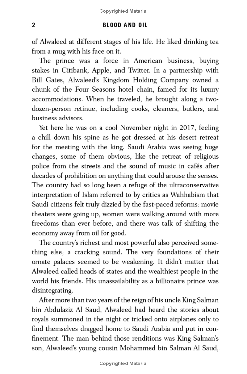 Blood and Oil is a gripping work of investigative journalism about one of the world's most decisive and dangerous new leaders. Hope and Scheck show how MBS' precipitous rise coincided with the fraying of the simple bargain that had been at the head of US-Saudi relations for more than 80 years: oil, for military protection. Caught in his net are well-known US bankers, Hollywood figures, and politicians, all eager to help the charming and crafty crown prince.
