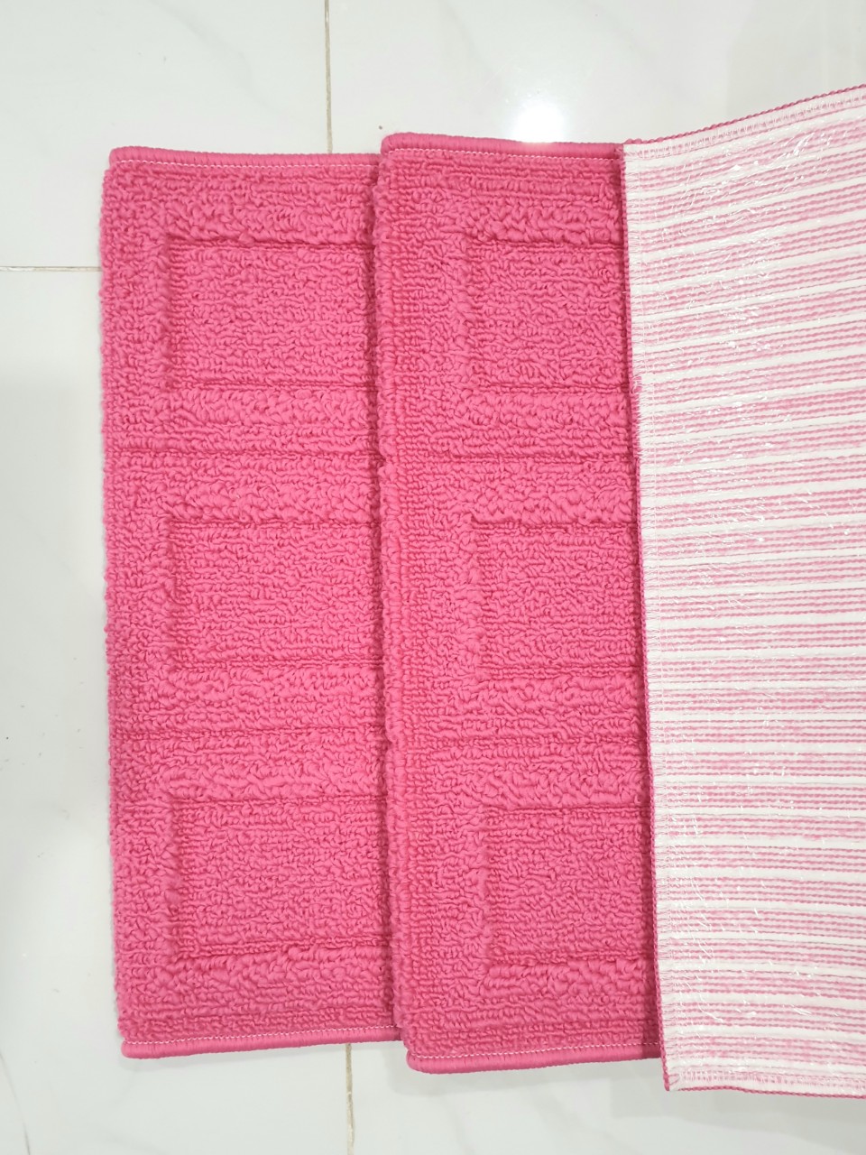 Bộ 02 thảm bếp chống trượt tuyệt đối kích thước 0.9mx0.45m và 0.9mx0.45m. - Made in Japan - Nhập khẩu trực tiếp - Màu hồng hoa văn 3D nổi ấn tượng, trẻ trung, sang trọng.