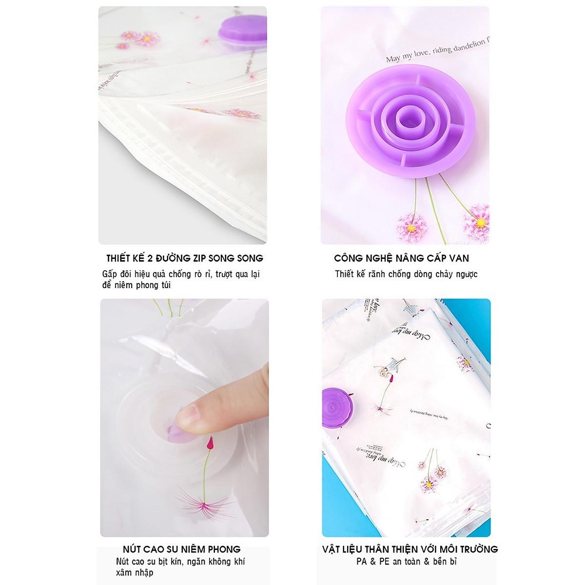 - 3 túi cỡ 100x75cm xếp được chăn bông rộng 2x2,2m hoặc 6Kg quần áo