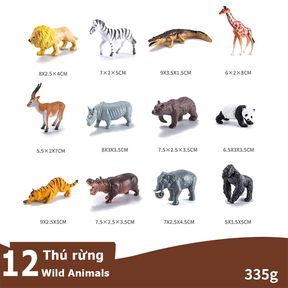 Bộ 12 đồ chơi động vật hoang dã size trung 8 cm cho bé 3 tuổi New4all