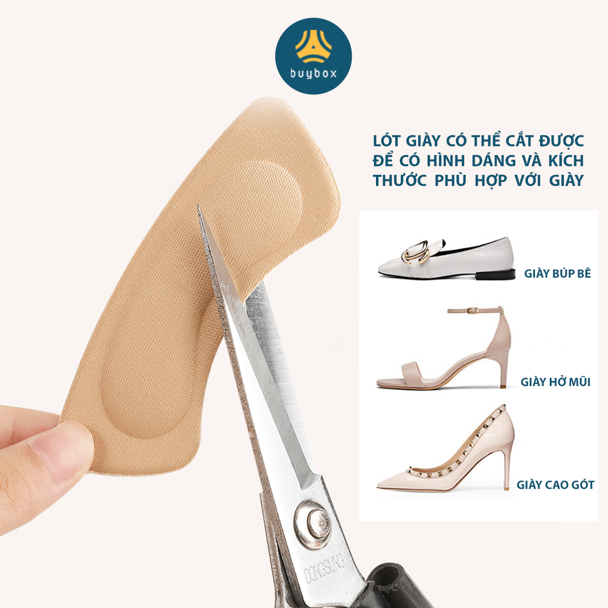 CÔNG DỤNG NỔI BẬC Lót giày đa năng chống rộng buybox là sự kết hợp giữa lót giày và lót chống trầy gót chân. Giúp chống rộng giày, giảm size.
