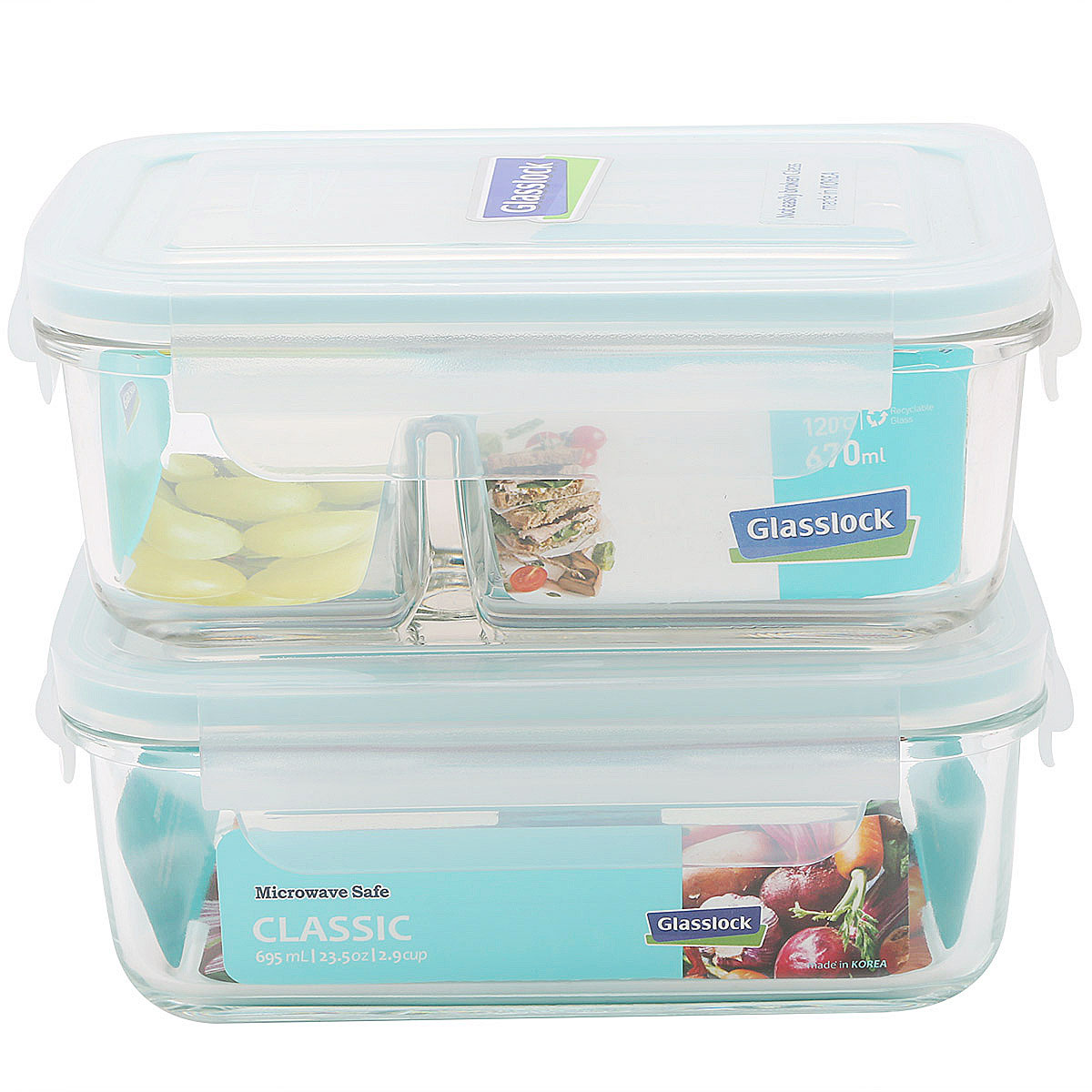 Bộ 2 hộp thuỷ tinh chia ngăn Glasslock 400mL và 670mL