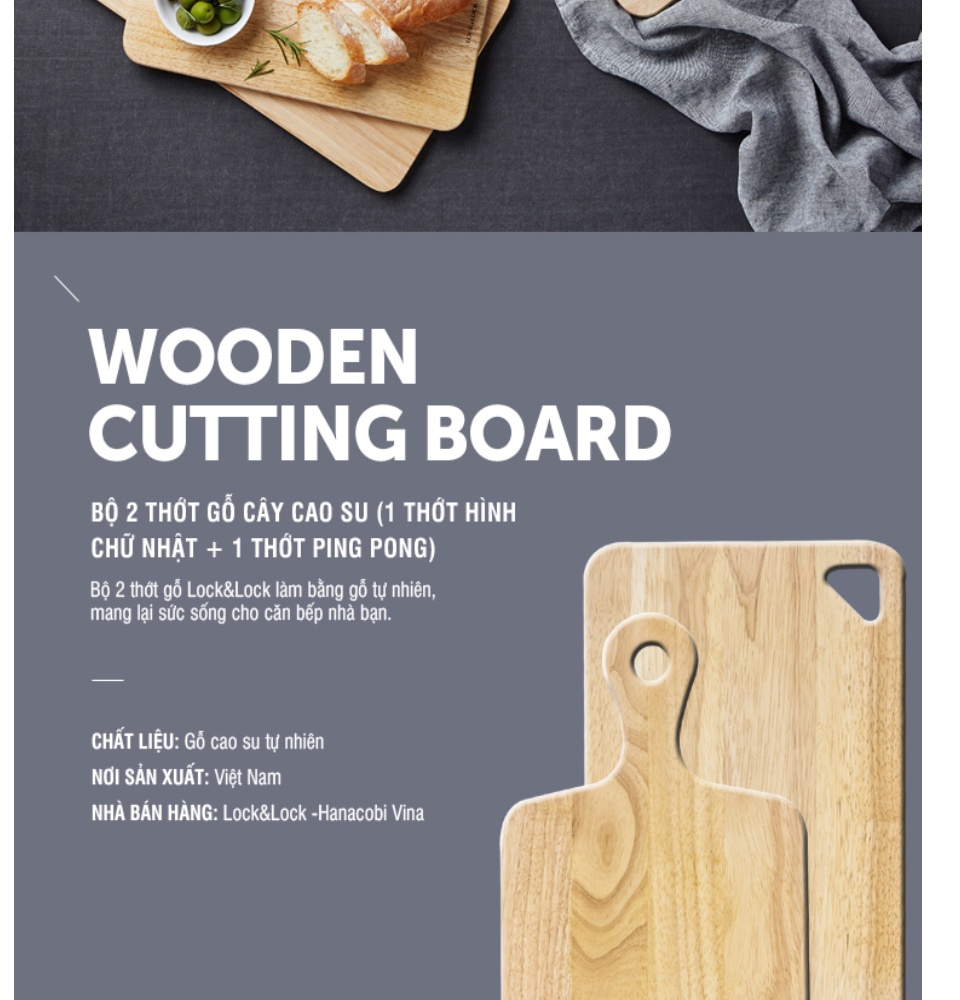 ✨Bộ 2 Thớt Gỗ Cây Cao Su Lock&Lock LWC001S2